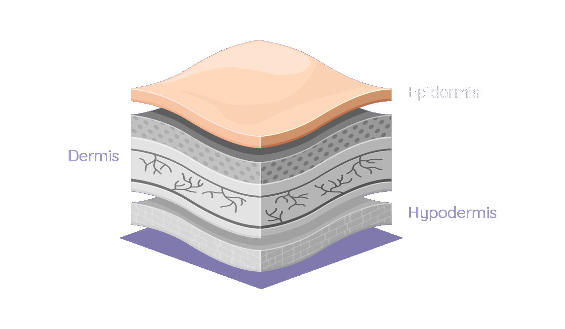 Beneath the epidermis lies the dermis, a layer rich in collagen and elastin, providing structure and elasticity to the skin.