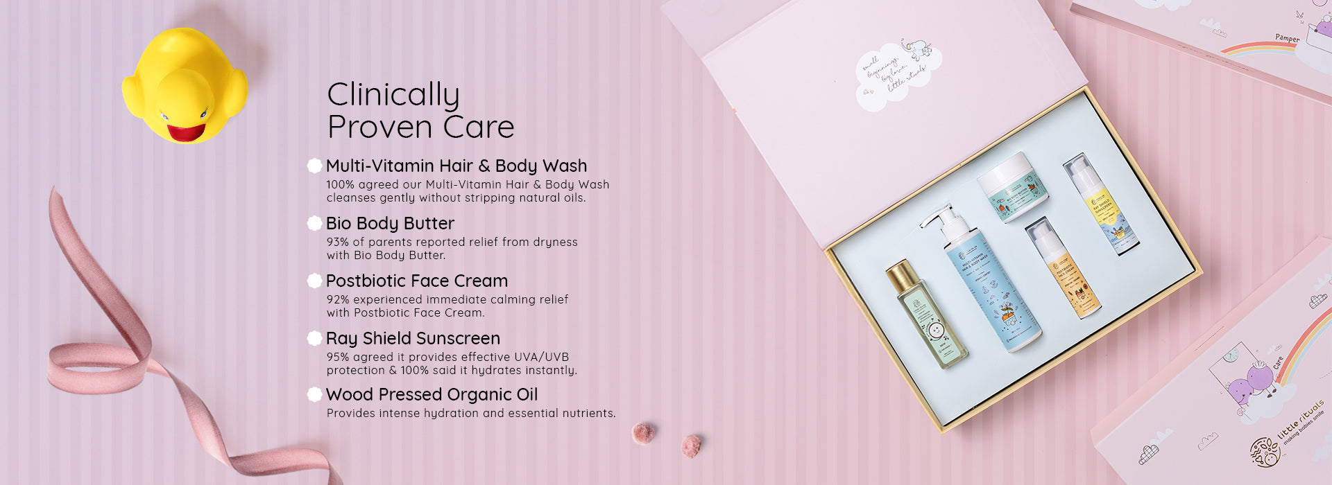 Give your baby the purest start with Little Rituals Custom Gift Box (With Sunscreen), a beautifully curated set of nourishing skincare essentials. Designed for personalization, this gift box allows you to choose the perfect oil for your baby’s delicate skin while including our best-selling must-haves for all-day hydration and protection.